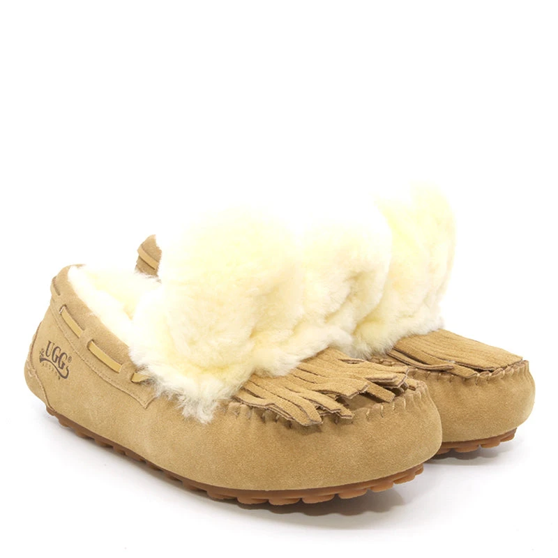 Meet the Rabb Ugg Moccasin from UGG Originals—where cozy meets cheeky in a slipper that takes lounging very seriously (but not *too* seriously). Wrapped in signature UGG sheepskin so plush it might just file for emotional support status, these moccasins are topped with playful pom-poms that say, “Yes, I have impeccable taste *and* a sense of humor.” Whether you’re padding around the house or popping out for a latte, these comfy charmers make every step a fuzzy little flex.