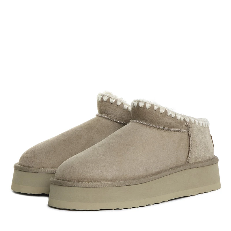 Our iconic UGG Mini Myles Platform Boots are made from suede upper and sheepskin lining, keeping your feet comfortable in both summer and winter due to the insulation in the material. The additional layer of the pretreated suede upper ensures water resistance.