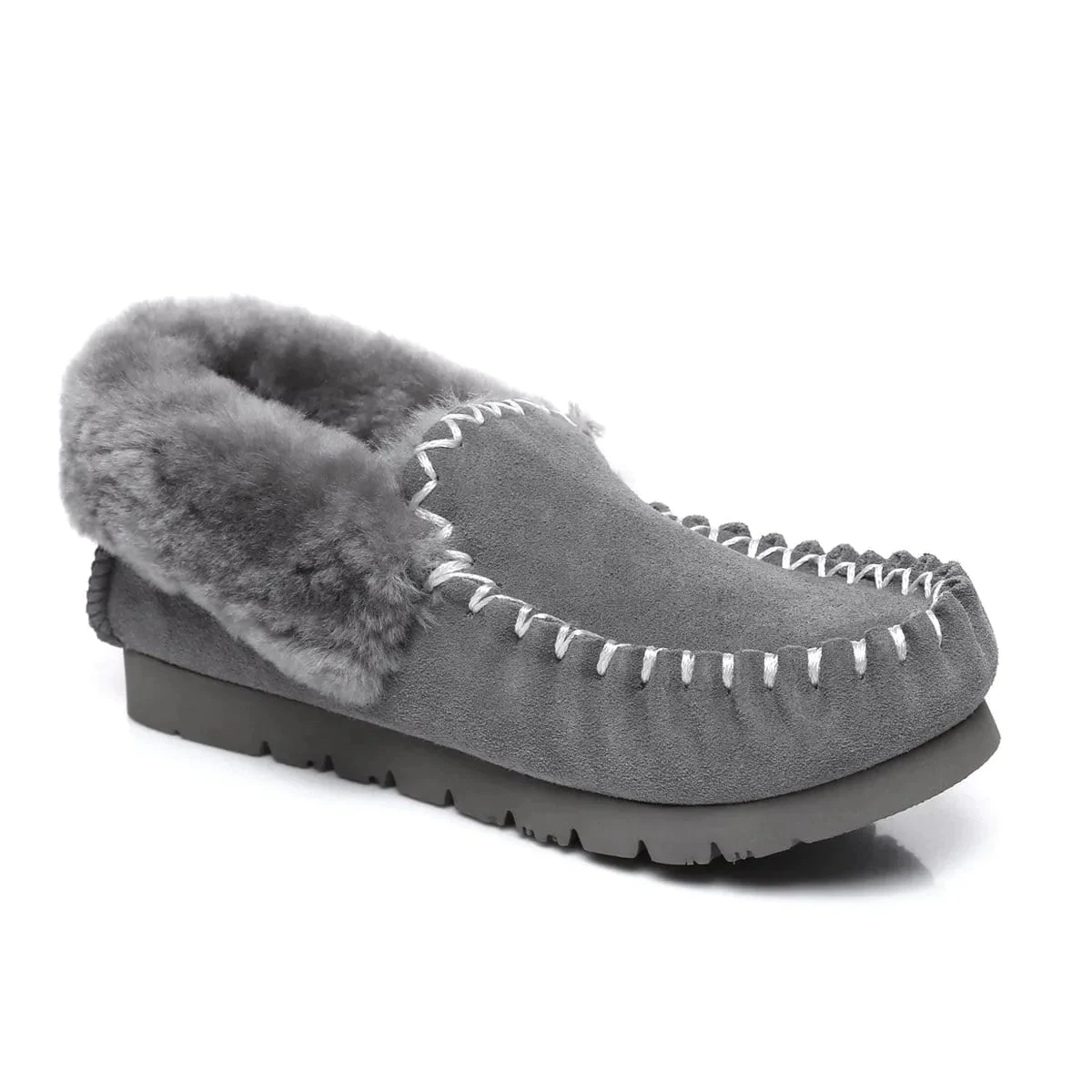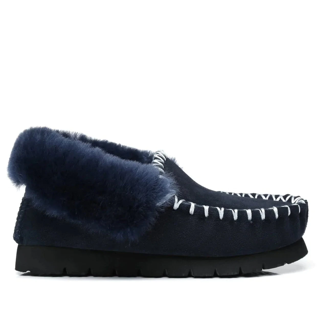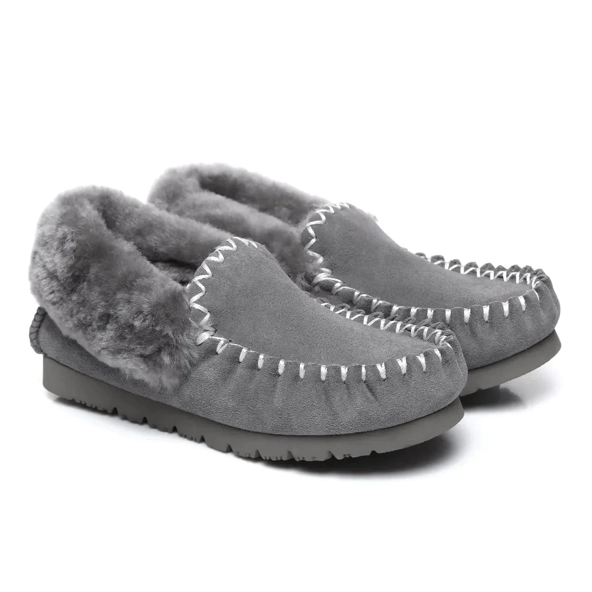 Indulge in the luxurious softness of our UGG Premium Traditional Moccasin Slippers, designed to envelop your feet in pure comfort. Made from genuine sheepskin, these slippers offer a sumptuous feel that you’ll love to sink your feet into. The natural insulating properties of sheepskin ensure that your feet stay toasty and cosy, providing an indulgent sanctuary for relaxation and lounging around the house.